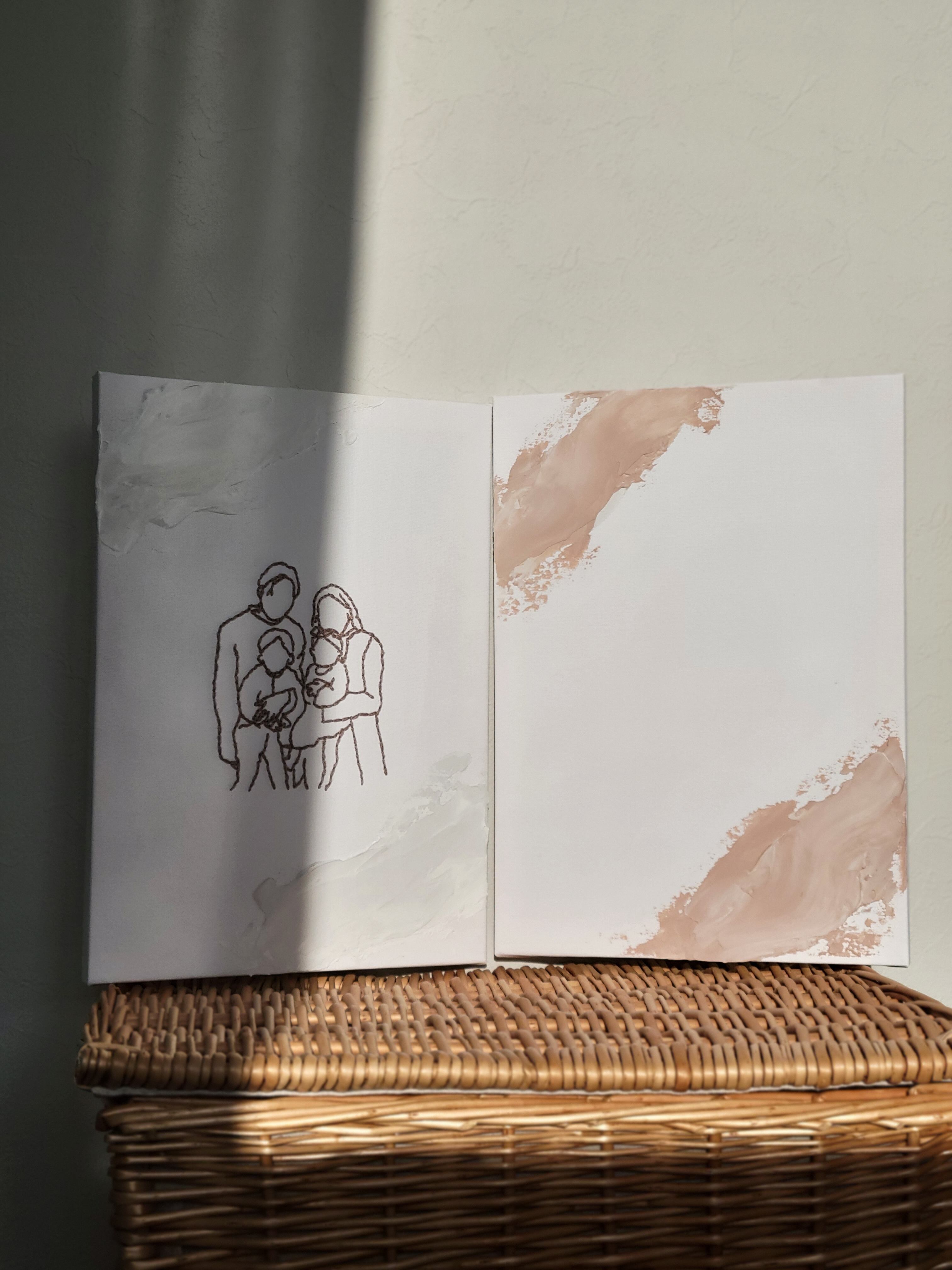 【オーダー】似顔絵 ラインアート 刺繍 線画 テクスチャーアート Wallart 家族写真