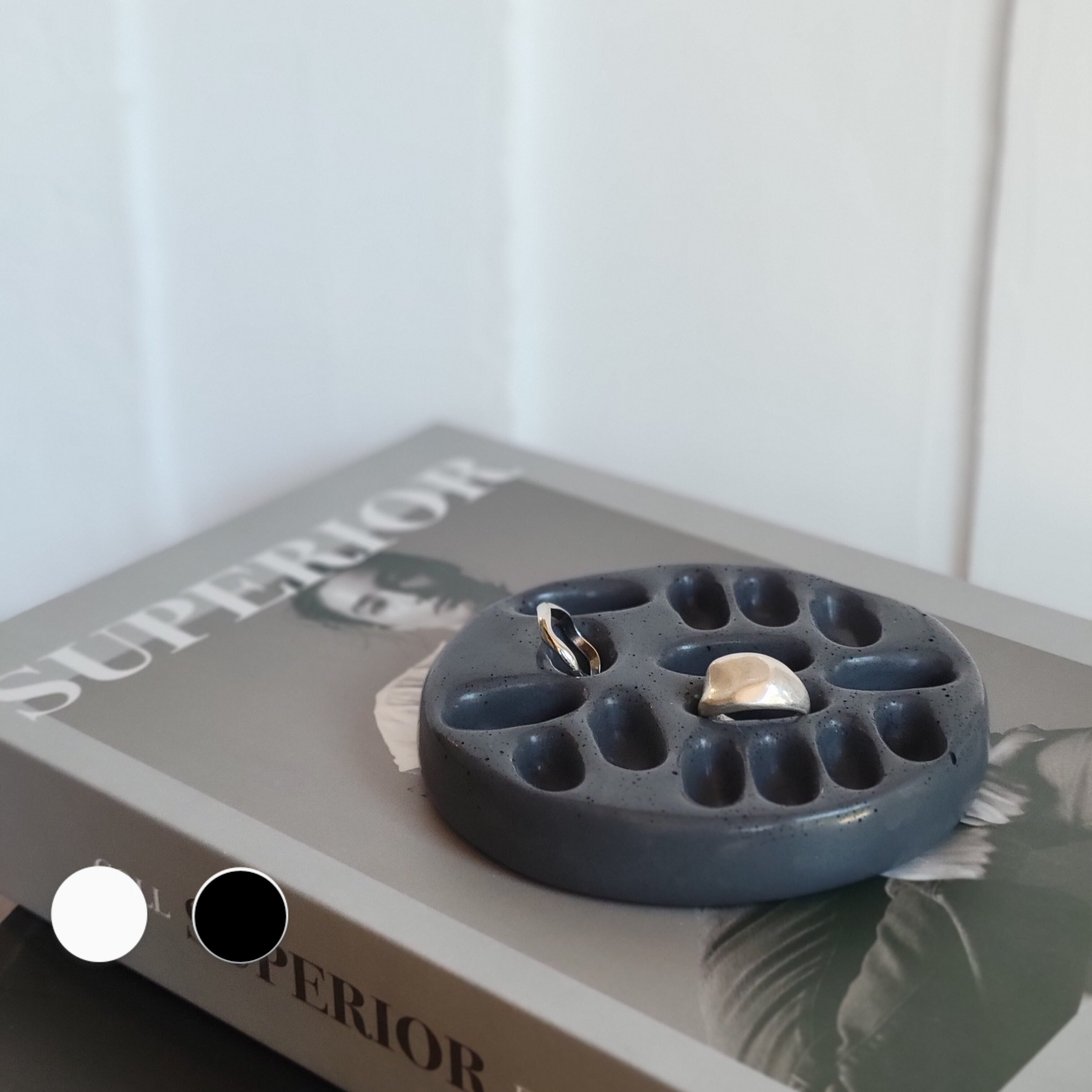 ぽこぽこと複数あいた穴が愛らしいリングホルダー/アクセサリートレイ。
