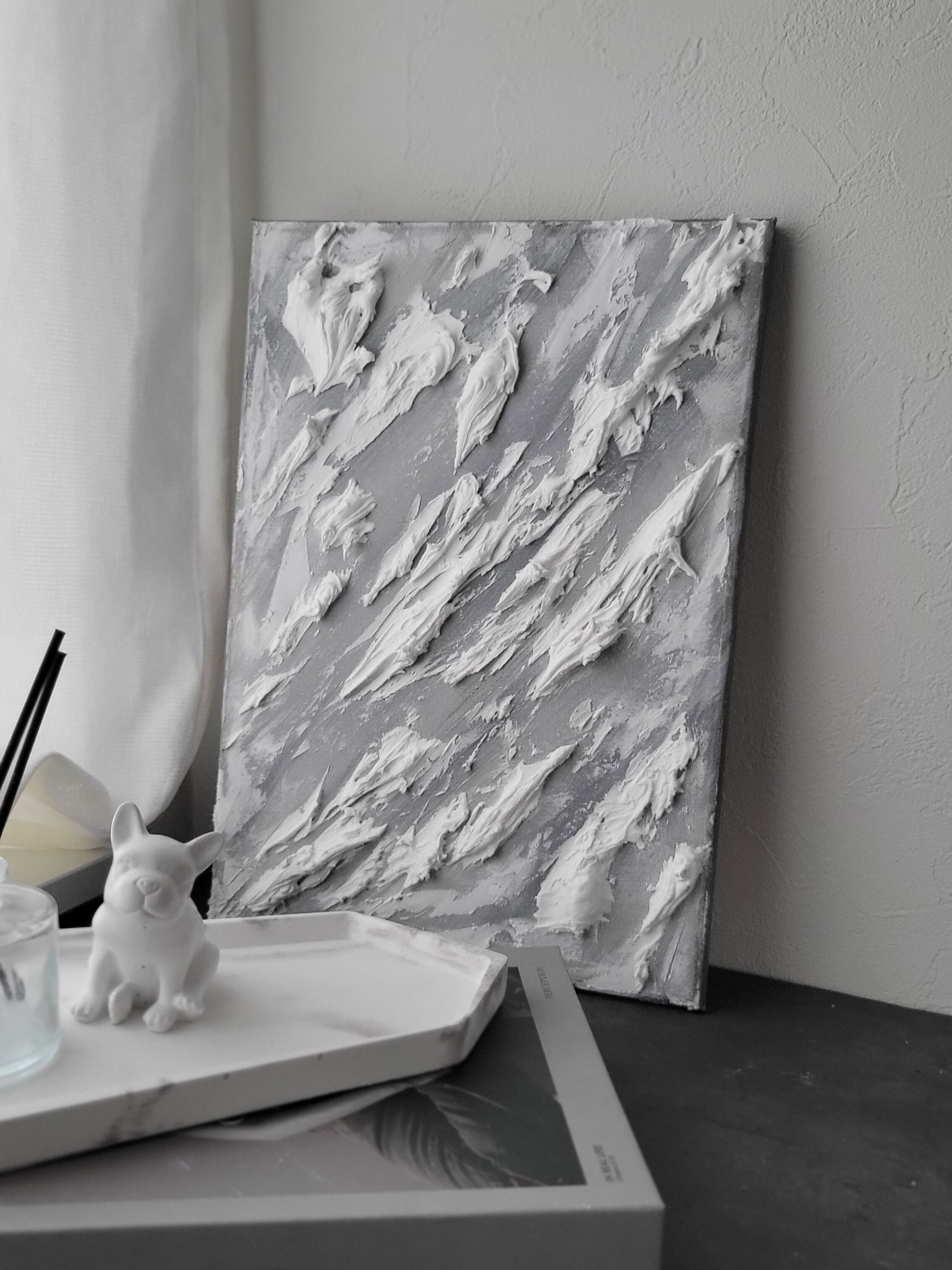 F4(24.2㎝×33,3㎝) ニュアンス グレー 立体 テクスチャーアート